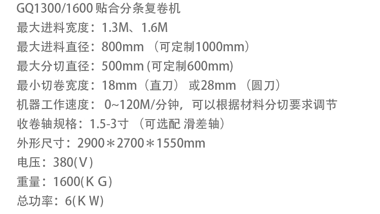 GQ1300膠帶分條收卷機無紡布光學材料貼合分切復卷機